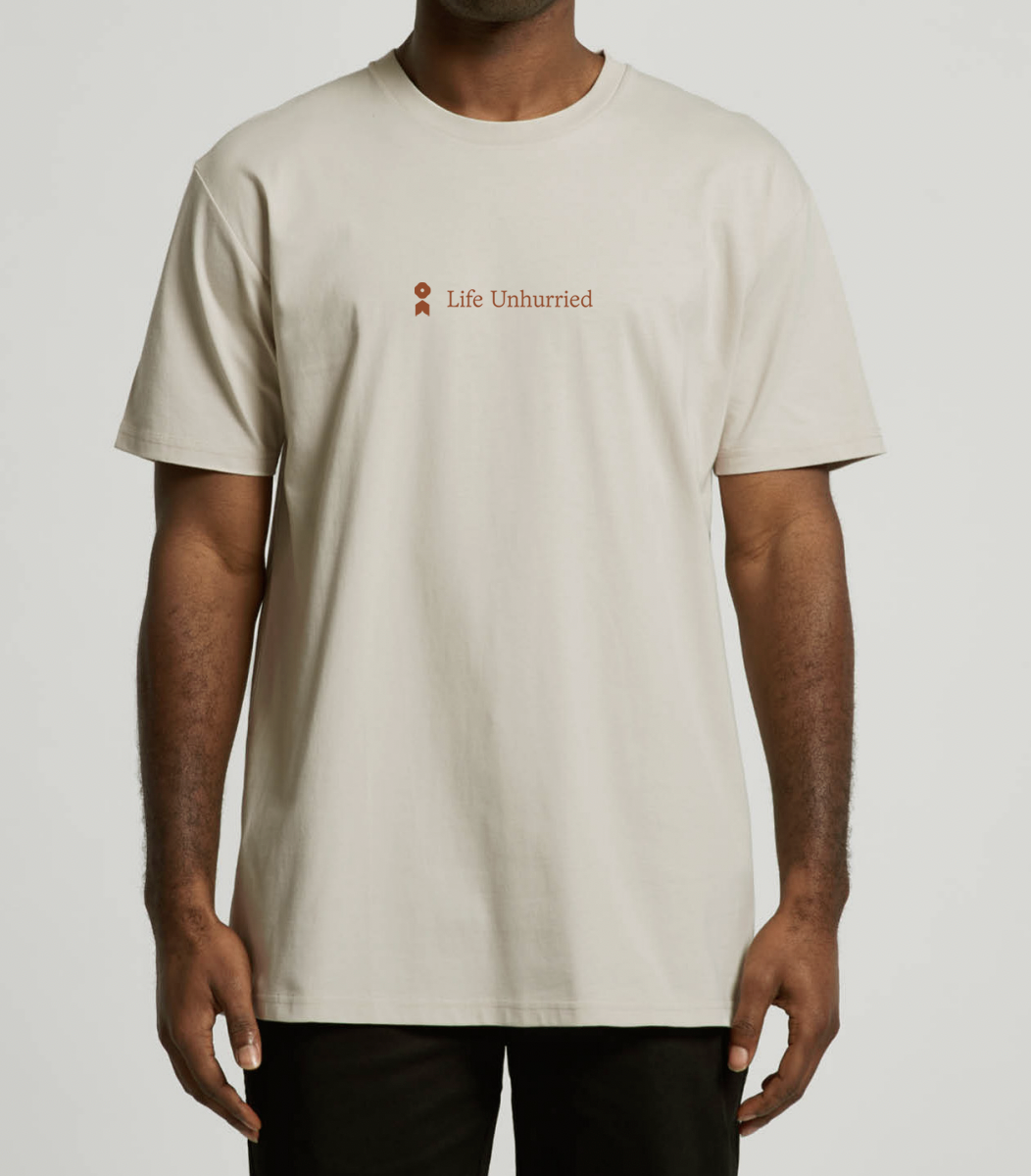 Introducing our "Life Unhurried Staple Tee", a relaxed fit, crew neck t-shirt designed for all genders. Made from 100% combed cotton, the fabric is heavy weight, and pre-shrunk to minimise shrinkage. Every stitch carries quality, from neck ribbing to double needle hems, ensuring durability.